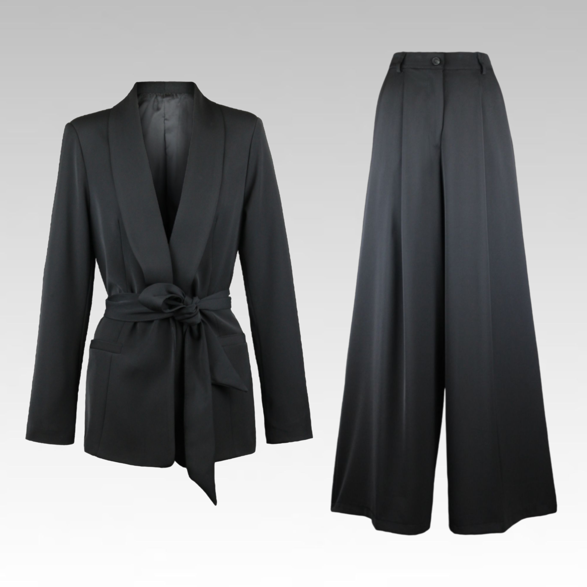 Tailleur con giacca annodata e pantalone loose