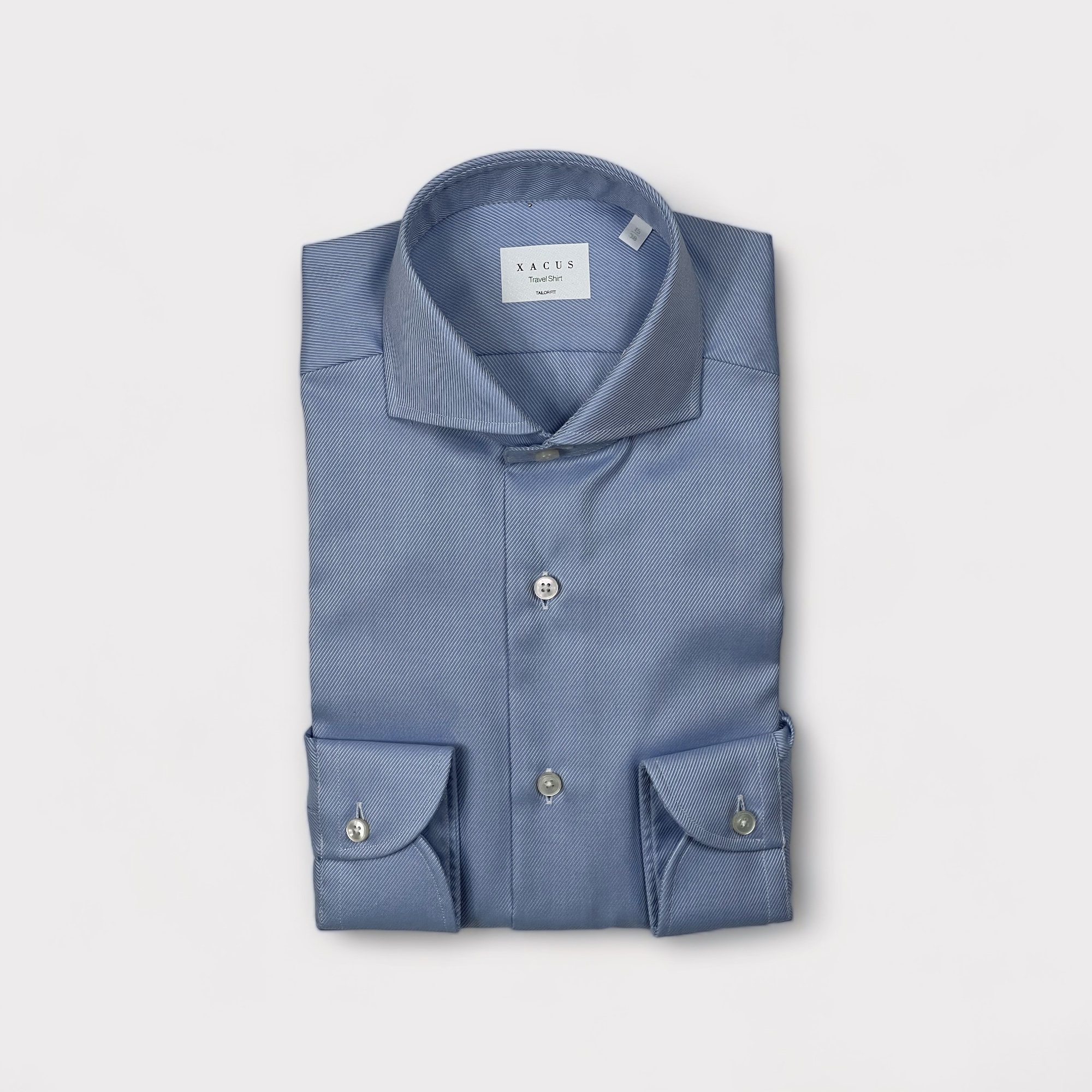 Xacus - Camicia con collo francese in puro cotone armaturato diagonale